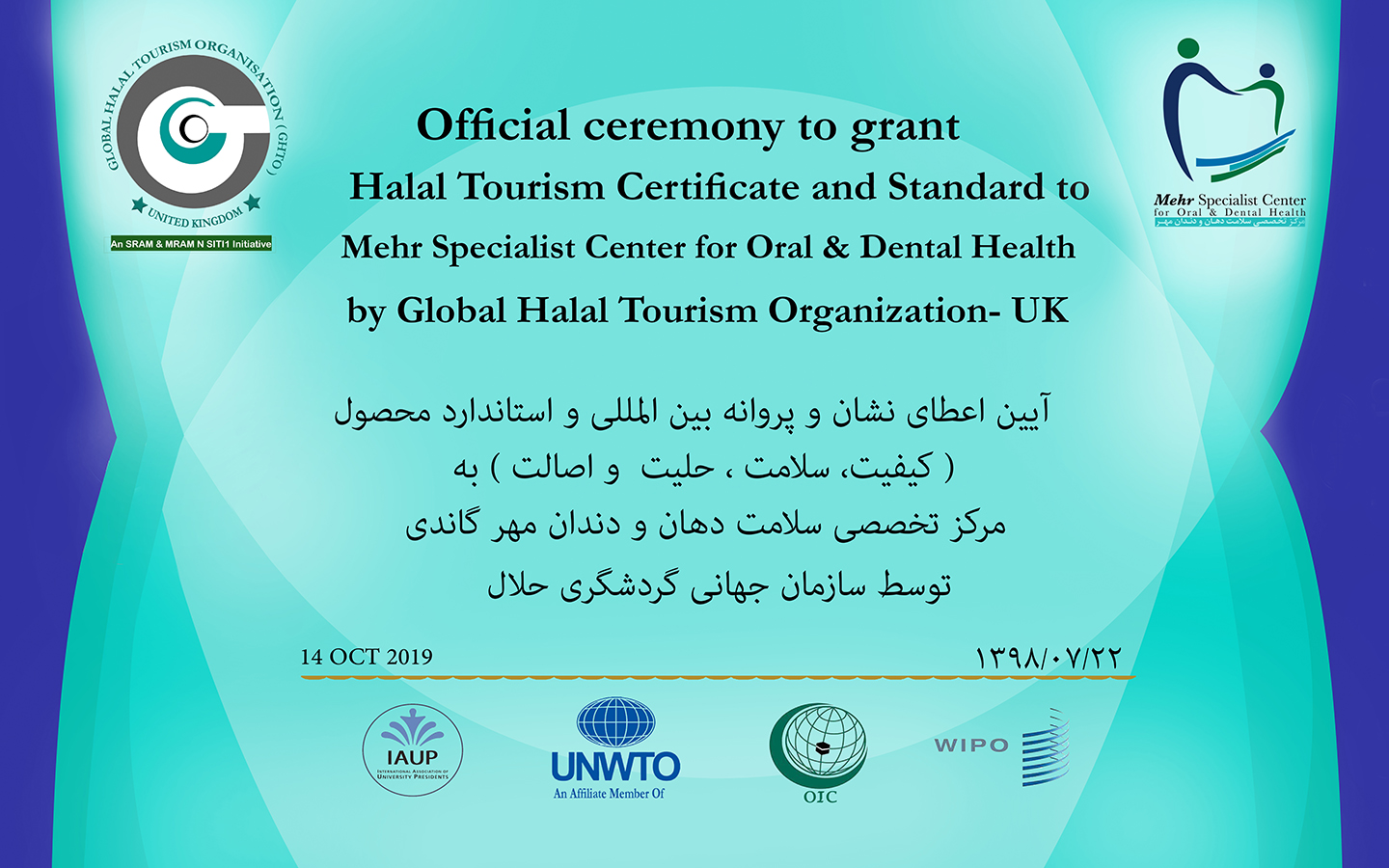 اعطای اولین پروانه بین المللی استاندارد جهانی گردشگری حلال در حوزه تخصصی دندانپزشکی به کلینیک تخصصی دندانپزشکی مهر گاندی